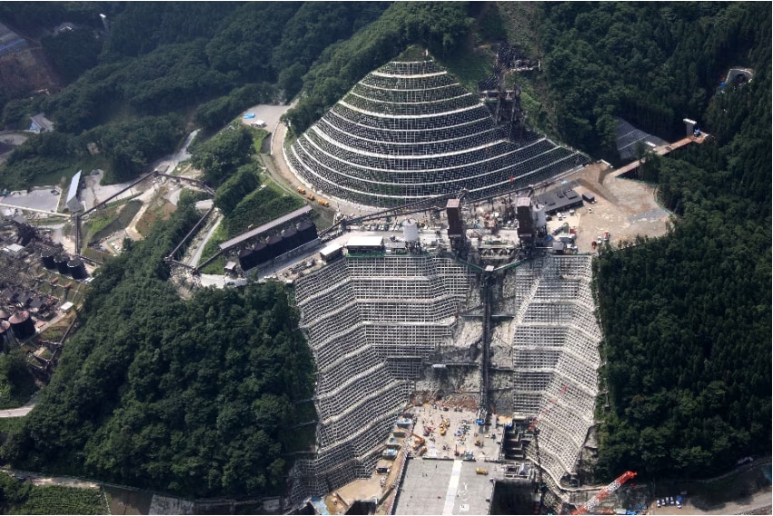 岩盤中の亀裂や空隙にグラウトを注入し、透水性を低減して安定性を高める工法です。